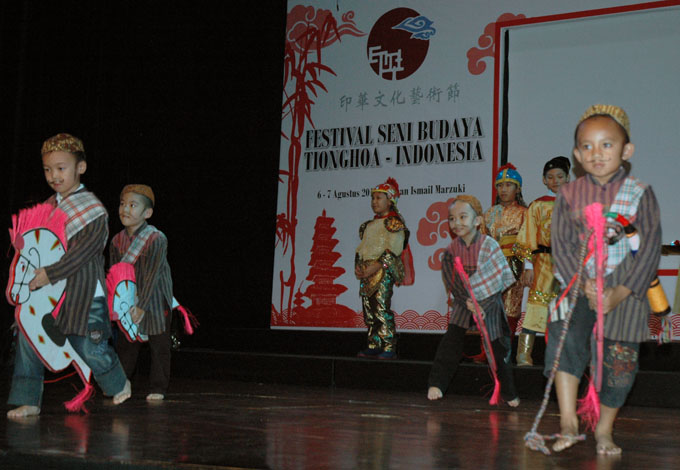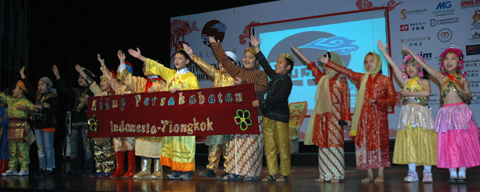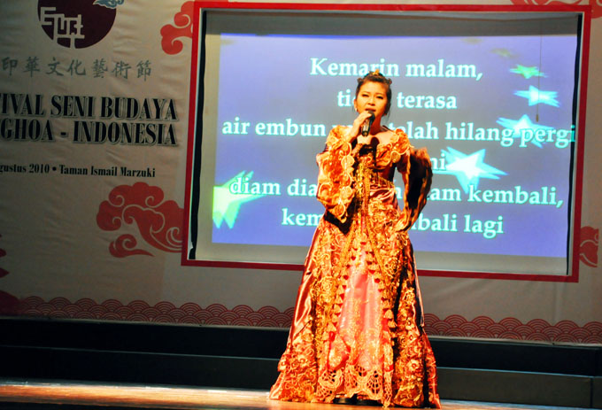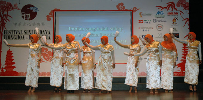 通过8月7日(星期六)晚上7时至9时在雅加达文化艺术中心(TIM Theater Kecil)多彩多姿的文艺晚会节目,印华作协(Perpetin)与印尼雅加达艺术委员会(DKJ)从本月6日(星期五)至7日(星期六)连续两天,为纪念我国独立65周年暨印中建交60周年环节中联合举办的“印华文化艺术节”终于圆满闭幕。