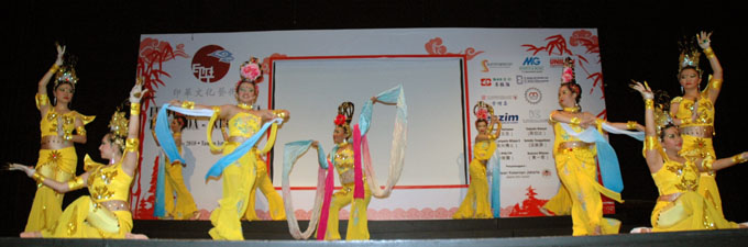 当晚的文艺晚会节目非常精彩,开头由著名的群岛合唱团“先声夺人”,《Indonesia Pusaka》和《Halo-halo Bandung》两首歌曲紧紧吸引了观众。接着,印尼建国大学贡献贡献《敦煌》舞蹈节目;印尼华裔诗人朗诵《Abdurrahman Wahid》,以诗歌详述印华文化在 “新秩序政府”时代受打压,以及印尼华族在“五月暴乱”受迫害的情况。