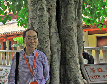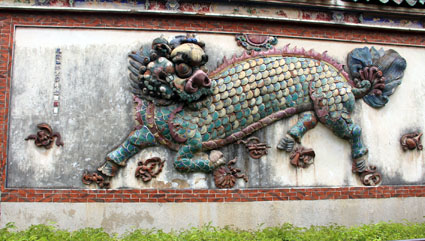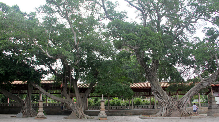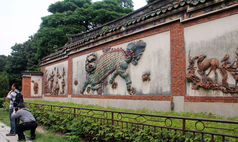 东西两塔已成为泉州的象征。既是泉州人民的骄傲,也是海外侨胞和台湾同胞所憧憬的乡影。即使是没有到过泉州的人也常在说:做人要“站着像东西塔,躺着像洛阳桥”,可见东西塔在他们心目中的份量。 开元寺花园有一株百年菩提树,许多游客和善男信女喜欢在树下拍照留影,第七期海外华文媒体高级研修班的同学们也纷纷把这株“百年智慧树”存入相机记忆卡。 菩提树也称为圣树、思维树、觉树等,与佛教渊源颇深。菩提树的梵语原名为“阿摩洛珈”(Pippala),因佛教的创始人释迦牟尼在菩提树下悟道,才得名为菩提树(Bodhivrksa),而“菩提”(Bodhi)意为“觉悟”。基于此点,在世界各地的丛林寺庙中,普遍栽植菩提树。 菩提树被佛教徒举为“圣树”是有一定道理的。据悉,菩提树的花可以作为药材入药,其果实同样具有祛疾除病,养生保健,益寿延年功效。 开元寺西塔旁边有一道长达十余米的石壁,是中国古代宫殿或大型寺庙等建筑物大门前的一道屏障,以显示其威严庄重,古人称为“照壁”。开元寺这个照壁正中有栩栩如生的“麒麟”浮雕,左边是马、象等浮雕,右边是羊、鶴等浮雕。 “麒麟壁浮雕”。根据记载,开元寺的“麒麟壁浮雕”是在清代乾隆乙卯年(1795年),建于泉州府城隍庙前的,并成为城隍庙的附属建筑。新中国政府于1970年代初,把“麒麟壁浮雕”移砌到开元寺西塔北面,使之更易保护。 麒麟是中国古籍中记载的一种神物,与凤、龟、龙共称为“四灵”,是神的坐骑,古人把麒麟当作仁宠,雄性称麒,雌性称麟。无论是麒或麟皆为古代的吉祥神宠,主太平、长寿、吉祥。然而有历史专家说,明代时期,一些“外邦”向明朝皇帝进贡的“麒麟”,其实是现代人所说的“长颈鹿”。 有人说,泉州开元寺照壁上的上述神兽,有两种说法:一说是麒麟,龙首牛尾,麟身偶蹄,步云回首顾盼状,下配嵌砖雕的元宝,如意等吉祥物。左右两堵各嵌砖雕的灵芝、牡丹、鹿、鹤等,暗喻福、禄、寿俱全。 另一说是:照壁上的神兽并非麒麟,而是称为“贪”(左旁加“犭”)的一种独角兽,古人所说“人心不足蛇吞象,贪心不足吞太阳”,就是这种类似“麒麟”的古兽。至于这种“古兽”是否曾经存在世上,或者已经灭绝了?这固然是不得而已,但我认为“人心不足蛇吞象”的家伙至今还是大有人在。