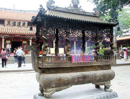 如果我们观光福建省,不可不去泉州市,如果我们去泉州市,就不可不游开元寺。 实际上,中国各地的“开元寺”至少有16处之多,其中最著名的是邢台开元寺、苏州开元寺、正定开元寺和泉州开元寺。 在福建省泉州市鲤城区西街(从前的西城外)的开元寺,如今成为全中国重点文物保护单位,于唐武后垂拱二年(686年)由黄守恭开创,迄今已有逾1300年的历史。 泉州开元寺是中国东南沿海重要的文化古迹,也是福建省内规模最大的佛教寺院。此寺原名莲花寺,后来改名为兴教寺、龙兴寺。据说,唐开元二十六年(公元738年),唐玄宗诏天下诸州各建一寺,以年号为名,因此改名为开元寺。开元寺南北长260米,东西宽300米,占地面积7.8万平方米,现存仅为原来的十分之一、二。 我们迈入泉州开元寺山门,便看到辽阔的院子,正中宝殿上的巨匾大字书写“桑莲灋界”。据说是开元寺的雅称,来源于唐朝垂拱年间桑树开白莲花的典故。第七期海外华文媒体高级研修班学友们也就在宝殿前院合影留念。 开元寺的山门,也叫天王殿。它建于唐武则天垂拱三年(公元687年),后来经过几次火灾烧毁与重建,现存建筑是民国十四年(公元1925年)修建的。 山门石柱上还悬挂有一木制对联“此地古称佛国,满街都是圣人”。据说这是南宋大理学家朱熹的创作,由近代高僧弘一法师所书写的。它是泉州这个具有浓厚宗教文化色彩的古城风貌的真实写照。分坐在天王殿两旁的是按佛教密宗规制所配置的密迹金刚与梵王。它们怒目挺胸,状极威严,却与一般寺庙所雕塑的四大金刚的造型不同。