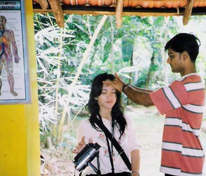 Hunas Falls酒店依赖的青山,不但有小丘坡地,也有草原湖泊,固然有乌鸦和松鼠,却也有珍奇的翠鸟和鹦鹉,虽然建筑了一个高尔夫球场,但是还保留了原来的天然景色;几个公园都是按照本来的地势,栽种数排灌木,铺上一些阶梯,设立几个饰灯建成的。 酒店总经理顾娜瓦尔德娜是印度后裔,她是在斯里兰卡的尼甘坡出生的,父亲是印度人,母亲是当地人,她受过高深的教育,曾经在英国留学,回到斯里兰卡之后当过教师数年。她热爱斯里兰卡,说斯里兰卡是祖国,印度则是父亲的祖籍国。她喜欢目前的酒店管理工作,但又念念不忘先前的教育工作,因此经常邀请各地的学生来到Matale区,到她管理的酒店实习或游玩。 顾娜瓦尔德娜说,Hunas Falls酒店对渡蜜月的新人及其家属给予特别的优惠,因此引来许多新郎新娘问津。顾客大部份来自欧洲、日本、新加坡、马来西亚,印度尼西亚游客也有一些,中国游客在去年底本来已开始增加,可惜后来因各地沙斯(SARS)瘟疫肆虐而停止了。 斯里兰卡人的婚嫁有独特的风俗,有些类似荷兰统治时期的雅加达人。首先,男子到女方家里相亲时,女的会亲自端出配好槟榔、石灰的萎叶(Sirih),男的便把萎叶嚼在口里,慢慢品味其中的甜甘苦涩表示领会婚后将经历的生活,若是中意眼前的女子,可含着萎叶道谢回家准备办喜事;若是不中意,男子便把口里的萎叶放回盘子。经过定亲的女子必须独处一室,谢绝所有男士、包括自己的父亲或兄弟的探访,经过七日之后,便把饮用后的茶壶甩破,表示驱逐身上的妖魔。 保留马来族传统文化