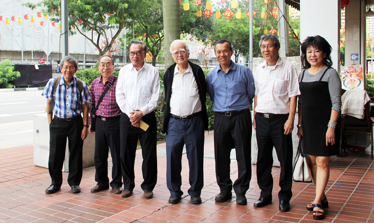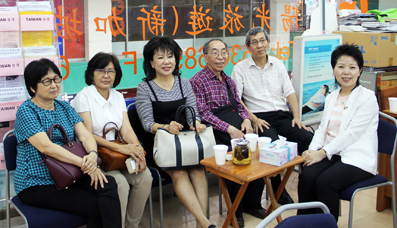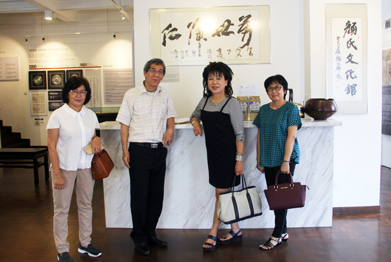 印华考察团来到新加坡颜氏文化馆的时候,很不巧文化馆理事们正在开会,但仍然允许我们参观展厅。 新加坡颜氏文化馆展厅在显著展牌写着其宗旨:(一)为颜氏历史文化作一个统筹、整理和存档,并通过展馆的对外开放,为社会注入另一股人文气息;(二)通过双语的呈现,促进新加坡多元族群间的文化交流与对话;(三)秉持学习母语和华族文化的热诚,让更多年轻人了解丰富精彩的中华文化,贴近他们的生活:(四)建构新加坡成为优质教育中心,从而与崛起的中国建造更紧密的两地关系。 文友们在多个社团获得许多赠书,每个人都提着十多部书籍,各个走得气喘吁吁,因此大家决定先把书籍放在酒店,然后在酒店附近搭地铁继续行程。 走到半路时,笔者看到一群人仰面走来,其中一人白发白眉白上衣,岂不是怡和轩俱乐部名誉主席、《怡和世纪》编务统筹王如明老前辈!不禁高兴的打起招呼。原来其他的人是林清如、谢声群和林沛,他们都是《怡和世纪》编委。