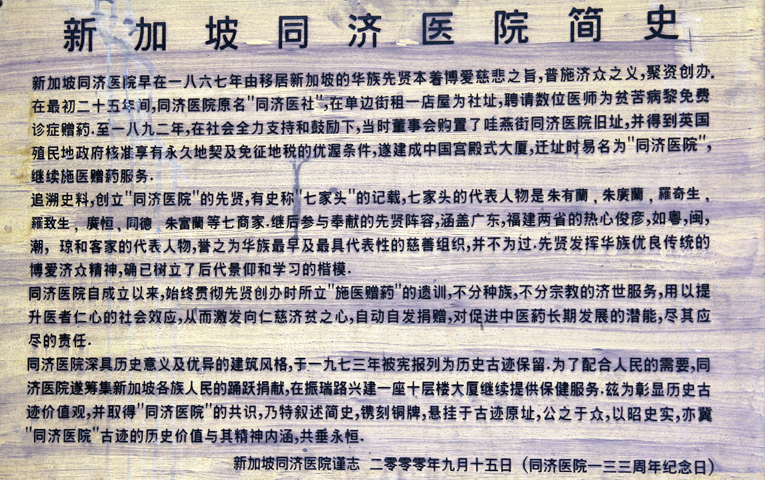 因陈惠连和陈惠卿两位文友已经和中央医院预约进行体检,不得不暂时离队,仅由寒川、叶冬珍和华实三人到新加坡墨玉斋艺术馆访问秦淮和李玉洁伉俪。 在前往墨玉斋艺术馆的路上,我们见到了负载了迄今长达150多年悬壶济世历史使命的同济医院。好多年前,新加坡诗人寒川曾带一群印华文友游车河,我有幸能在车上瞥见这座创建于1867年(清代同治时期)的医院,如今重逢得见其全貌,更觉得这间医院虽然并非富丽堂皇,但她在一个半世纪期间始终向弱势群体施医赠药,其医德博爱之诚更抵得过天下最富丽堂皇的大医院! 我们一面走一面交谈,不知不觉到了墨玉斋艺术馆。墨玉斋艺术馆馆长秦淮非常好客,一见到我们就说:“若知道你们回来,我一定叫玉洁拿多几张参观券,带大家去参观杨丽萍举办的孔雀舞表演会。” 秦淮特别在墨玉斋艺术馆设置一套精美的泡茶桌,还拿出珍藏的普洱茶。经过他熟练的冲泡技巧,我们有幸品尝了馥郁芬芳、味如甘霖的普洱茶。