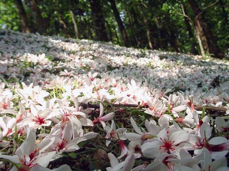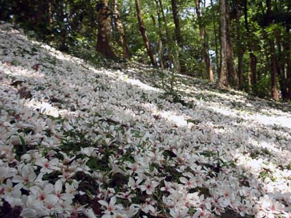 五月桐花雨 “桐花叶里丹山路,雏凤清于老凤声。” 五月的台湾,桐花盛开。桐花盛开的季节,称为“五月客家桐花祭”,是台湾客家人的节日。从四月桐花发芽开始,客家族群聚集的桃园,新竹,苗栗等地都有很多庆祝活动,在台湾时,看到一分资料称,从四月桐花发芽至五月盛开到凋零的一个多月时间里,围绕桐花祭共有2000多场的活动。海外其他地方的客家人,好像都没有专属的这种庆典节日。 五月桐花盛开的时候,我刚好在台湾,参加五月初台湾元智大学邀请的"族群•语言与社会"国际学术研讨会,因为有这一份邀请,我才能看到美丽的“五月雪”。元智大学中文系刘阿荣教授知道我想看桐花,特别给我送来“客家桐花祭”在台湾几个地区的庆祝活动节目表,我看了看,活动都是在郊区山上,对于我这个匆匆来去的海外来客,时间匆促,也不敢单独前往,只好遗憾地错过了。 与我们陈家情同兄弟的台湾朋友柯先生,原本有事要到外地去,特别为我留了下来,会议结束后,他带着我坐着捷运到台北动物园站附近,排队坐缆车。 缆车缓缓地爬升,台北景物在我们的视线里一览无遗,脚下,是绵延青葱翠绿的树林,间中一两间红瓦屋顶;忽然,青葱翠绿中,眼前一片雪白,一丛一丛的白花缀满了山头。桐花就在我脚下,层层叠叠,铺天盖地,开得那么茂盛,白皑皑地让人震撼! 与我们同一缆车的是一家人,一对夫妻带着他们的父母以及一个五六七岁的小女孩,小女孩兴奋地从缆车这一头跳到另一头,有畏高症的爸爸,一个壮汉,使劲地抓着老婆的手,一边喊着:“不要跳!”小女孩喊:“爸爸,快看哪,好美啊,雪白雪白地,好多好多……”“知道,知道,爸不看,不敢看……” “桐阴瑟瑟摇微风,桐花垂垂香满空。” 朵听着他们的对话,我不由笑了…… 我们在终点“猫空站”下车。人潮如织,是不是都来看桐花呢?柯先生带我一直走,一直走……我喘着气,紧跟着他的脚步,不知要带我到那里去。 走啊走,忽然一卷真实的画,摊开在眼前这一条小山径,纷纷飘落的白花,如雪铺盖,美景似梦,我站在那里,如沐霜雪,心境一片沁凉。现在总算明白,为什么叫做“五月雪”。我轻轻蹲下,拾起了一朵花,五星形花瓣,白色的花冠,花心透着淡紅與粉黃,美的让人透不过气来。不明白高八九公尺的大树,怎么会生出这么细致粉琢的花?远远看,它是一丛丛一团团,近看原来只是这么一小朵一小朵堆叠起来的。 满地的落花,有刚刚飘落、透着姣美的鲜花,被雨吹落的残花,则软绵绵地瘫在地上,失去了它在树上意气风发,风华正茂的样子。风雨残花,让我有丝丝伤感,花如人,总是禁不住摧残啊。 柯先生带我在一个清静的茶座里喝茶,吃着花生、橄榄,山脚下碧绿青葱,风微微地吹着,白色的花雨在眼前飘坠,空气中飘着淡淡的花香,在鼻端萦绕……五月的桐花让我沉醉。 洁白的油桐花,旋转飞扬翩翩而飞,又在我眼前美丽地陨落。有幸在五月,桐花一年只有一次的花季,我在它的树下见识了短暂而苍茫的美丽。 |