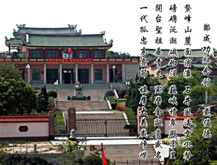 鳌峰山麓面沧瀛,石井风涛雷吼声。 磅礴泛潮矶砌没,巍峨积翠殿亭呈。 开台圣祖垂青史,完璧金瓯负盛名。 一代孤忠高亮节,填膺大义岁峥嵘。